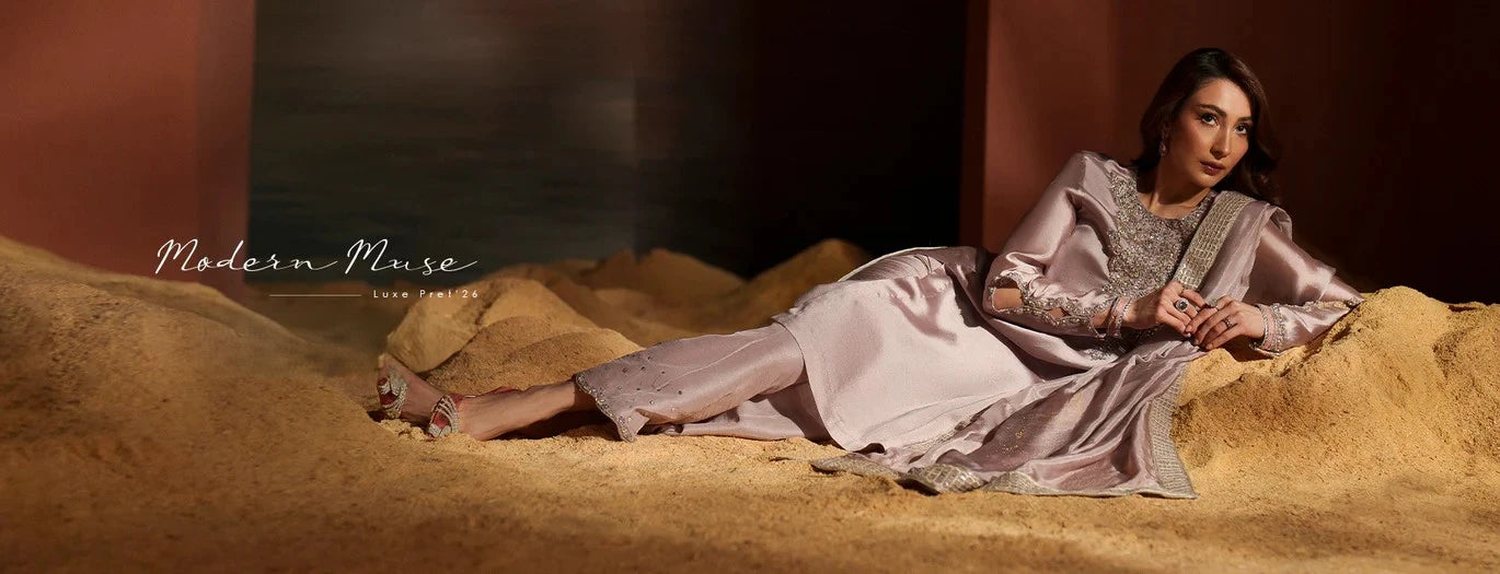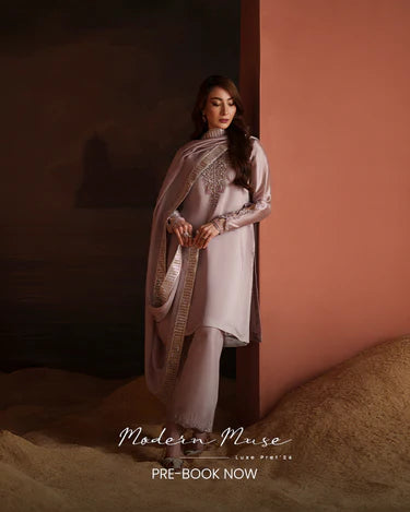 Work Technique: Printed & Embroidered Best worn In: All Season Package Includes: 3PC Shirt, Dupatta & Trouser Fabric: Silk Description: Crafted with a polished Sheesha silk shirt for a smooth and elegant silhouette.The Korean...