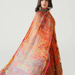 The ensemble is paired with a silk printed dupatta featuring a detailed paisley pattern in shades of green, pink, yellow, and blue, finished with embroidered and Banarasi borders. Plain lawn bottoms with a Banarasi hem complete this luxurious look, making Mahlaqa Bai perfect for weddings, festive occasions, and celebratory gatherings.