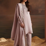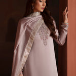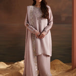 Paired with a silk embroidered dupatta, adding softness and refined detailing.