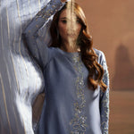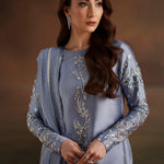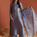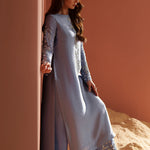 Paired with a silk embroidered dupatta, adding softness and refined detailing.