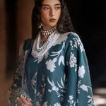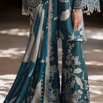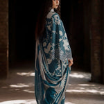 A digitally printed linen shirt paired with a matching printed linen trouser, creating the perfect harmony of comfort and charm. The ensemble comes alive with embroidered organza finishings, a delicate sleeves border, and a refined organza trouser border — each detail a whisper of craftsmanship. Wrapped in a woolen printed shawl, Kaya radiates warmth, style, and the serene beauty of winter elegance.