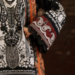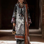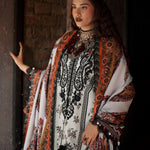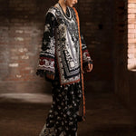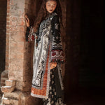 Work Technique: Printed Best worn In: Winter Package Includes: 3PC Shirt, Dupatta & Trouser Fabric: Khaddar Description: An ivory khaddar fabric shirt adorned with black printed elements, paired with black sleeves detailed in...