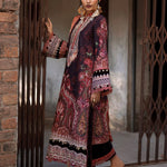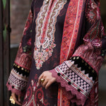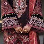 Crafted on linen fabric, this elegant ensemble tells a story of timeless grace and detail. A sparkling embroidered neckline patti and daman border with black sequins bring a soft shimmer to the design, beautifully complemented by delicate sleeve borders. Paired with printed trousers and a warm printed woolen shawl, Naqsh becomes the perfect harmony of sophistication, comfort, and seasonal warmth.