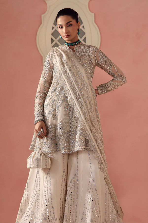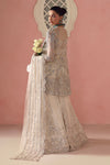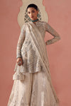 An embodiment of refined elegance, the Eloria Off-White Peplum & Sharara Set merges traditional craftsmanship with refined sophistication. This stunning ensemble features an off-white peplum top expertly tailored with a...